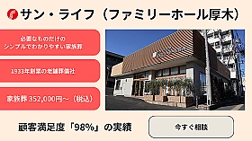 サン・ライフ(ファミリーホール厚木)は、1933年に創業した歴史ある葬儀社です。年間施行件数は7000件以上、葬儀を行った方の98%以上が「満足した」と評価しています。