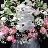 お花の祭壇は4万円から5万円程度が一般的です。白木の祭壇もございます。