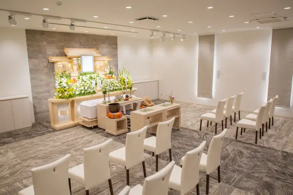 「サン・ライフ(さがみ野駅前ファミリーホール)」は、一日一組限定の貸切りでご利用いただけます。最もご要望の多い20名以下の家族葬に最適な広さの式場を、他の家族に気を遣うことなく利用できます。