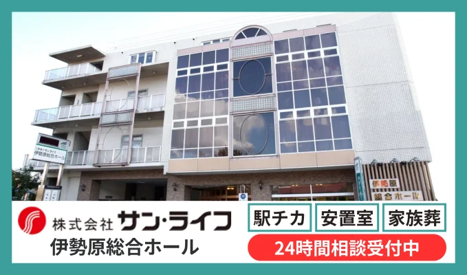 伊勢原市串橋にある伊勢原総合ホールを運営する「サン・ライフ」は年間7000件もの葬儀を行う、大手葬儀社です。 火葬のみ、一日葬、家族葬、一般葬など様々な葬儀に対応してきた経験をもとに、あなたの希望の葬儀を実現してくれます。