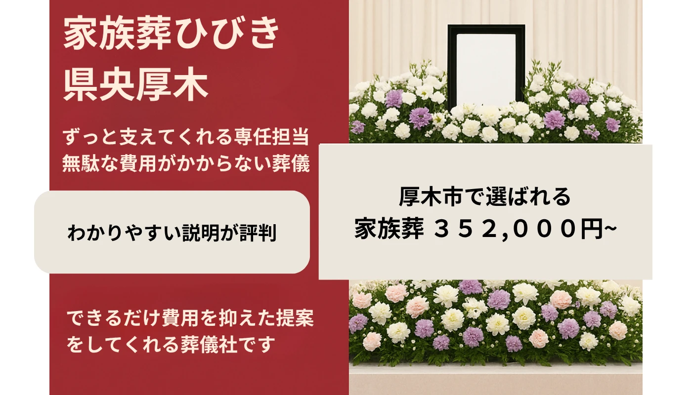 厚木市にある「株式会社 一心葬」は「無理な提案をしない」ことを大切にしています。ご葬儀に本当に必要なものを明確にし、追加オプションは希望に応じて自由に選べるスタイル。わかりやすい見積もりと正直な説明により、「気づかないうちに費用が増えた」といった不安もなく、ご遺族の気持ちに寄り添う形でご提案します。