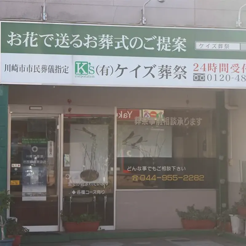 ケイズ葬祭は、小田急線「読売ランド前」駅から徒歩5分、ヤクルトさんの向かいにあります。川崎市麻生区で30年以上、地域の葬儀をお手伝いしてきた葬儀社です。施行件数11,500件以上の確かな経験であなたをしっかりサポートしてくれます。