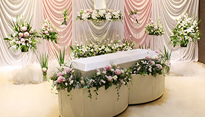 佐野商店では故人らしさを表した、世界でたった一つの花祭壇を作成してくれます。好きだった花や色、季節の花いっぱいの祭壇で、故人を偲ぶことができます。