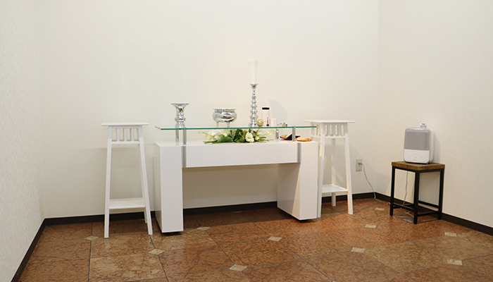 葬儀社の会館でお預かりするか、ご自宅で安置するかをお選びいただけます。ご自宅での安置をご希望の場合は、スタッフがドライアイスやお参りの道具をお持ちして処置をいたします。