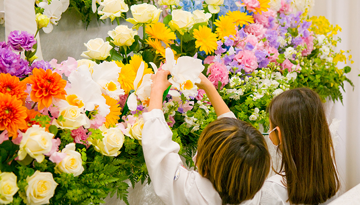 花屋生まれの葬儀社だから、全てのプランに沢山のお花が標準で付いてます。
