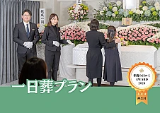 384,780円〜▶通夜は行わず、一日で葬儀・告別式を行うプランです。 ▶費用やご負担を抑えながら、一日だけのお葬式ができます ▶お寺さまのご紹介も可能です ▶流れ ①ご逝去 ②寝台車でご搬送 ③ご安置(ご自宅or弊社預かり) ④一日葬打ち合わせ1時間〜1時間30分(ご自宅orカフェ) ⑤一日葬当日 告別式→火葬 わからないことはすべて丁寧にご案内いたします