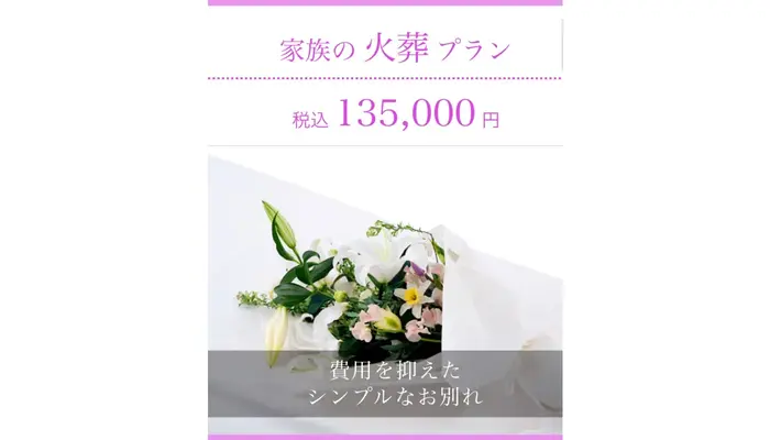 135,000円〜通夜・告別式を行わずに火葬のみでお見送りするプランです。