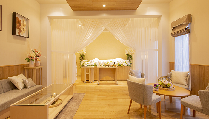 サン・ライフの自社式場「ファミリーホール橋本」は一日一組限定で利用できる斎場です。個室タイプの安置室も完備しており、面会や付き添いが可能。他の方を気にせず完全プライベートな空間で、故人との時間を過ごせます。