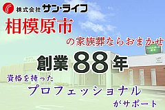 サン・ライフ(ファミリーホール橋本)は、「スタッフ対応がとってもいい」と評判。実際に葬儀を行った方へのアンケートでは98%以上の方が「満足した」と回答しています。安心して任せることができるオススメの葬儀社です。