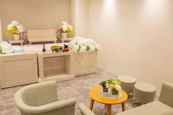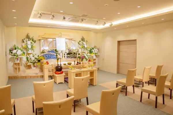 サン・ライフの自社式場「サン・ライフ小田急相模原駅前ファミリーホール」は、一日一組限定で利用できます。30名程入れる式場は家族葬にピッタリ。完全プライベートな空間で、故人との最後の時間を過ごしてみませんか?