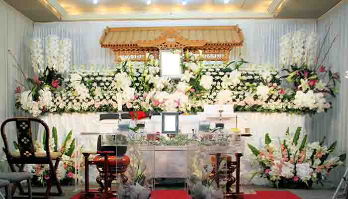 他の葬儀社にはない、オリジナルのアクリル祭壇を利用できます。 お花がより際立つ透明のアクリル祭壇は大人気。特に女性から好評をいただいています。