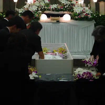当社の安置所にご安置後、ご遺族様でのお別れ、そして翌日業者によるご遺体の搬送となります。時間的制約があるため、大規模な葬儀ではなく、簡略化された形になります。
