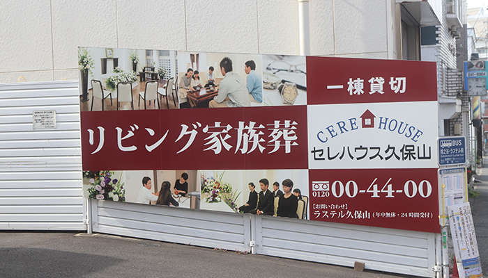 ニチリョクの自社式場「セレハウス久保山」は、一日一組限定で利用できます。30名程入れる式場は家族葬にピッタリ。貸切で利用できるので、故人様との最後の時間を自宅でくつろぐように過ごしていただけます。目の前にバス停があるので、公共交通機関でのアクセスも便利です。