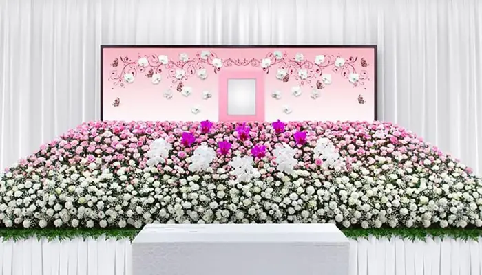 495,000円〜ベーシックプランを元に生花祭壇、お棺、骨壷を、 ご家族が選べるプランです。 家族が想う故人様らしいお葬式です。