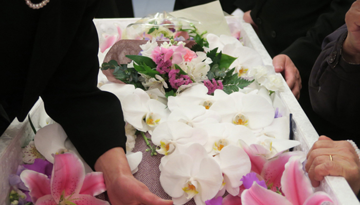 面会に行ったときに、棺に入れたいものなどがあれば用意してください、と言っていただいて、手芸が好きな母でしたので、翌日面会に行ったときに編み物セットを持っていったら、棺の前に丁寧に飾ってくれました。