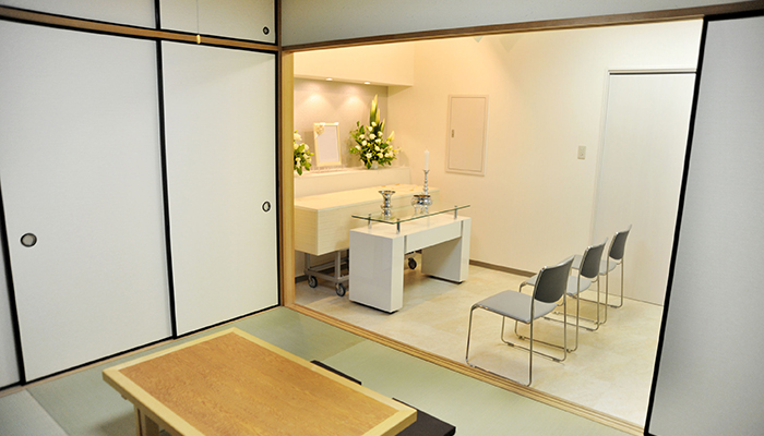 家族葬会場でお待ち合わせいただき、故人様のお顔を見て、お線香をあげ、お別れをする形式です。