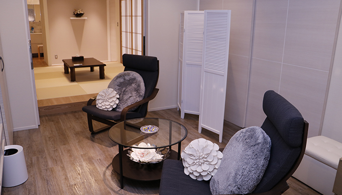 東急東横線「綱島」駅から、バスで15分の場所にある「小さなお葬式 鶴見駒岡ホールは、家族葬専用斎場です。 キッチンやバスルームも完備した自宅のような空間で、家族だけのお別れの時間をゆっくりと過ごすことができます。