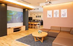 ワンフロアに御手洗い、会食室、喫茶スペース、式場 、控室と完備している為どなたでも不自由無く御利用頂ける会館です。