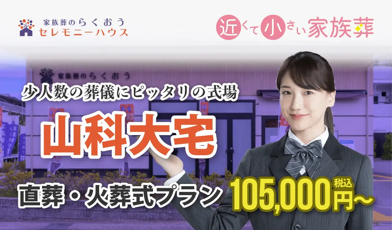 「家族葬のらくおう(山科大宅ホール)」は、京都市山科区にある葬儀社です。親切丁寧な対応はもちろんのこと、あなたの希望に合わせて柔軟に対応いたしますのでご安心ください。大切な人との最後のお別れ。「家族葬のらくおう(山科大宅ホール)」にお任せいただければ、必ず素敵な葬儀にいたします。