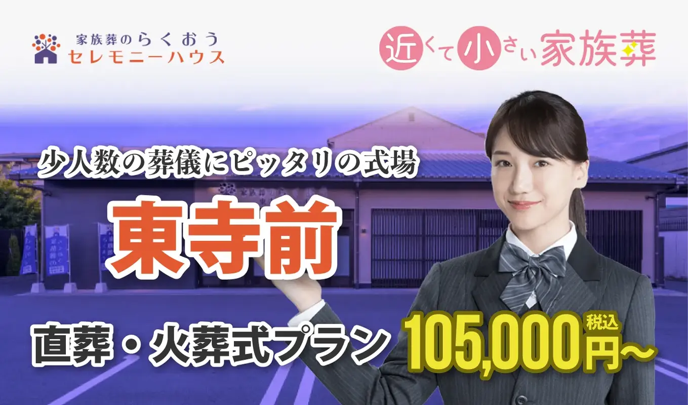 「家族葬のらくおう」は、京都市東山区で多くの葬儀を行ってきた葬儀社です。今話題の家族葬に特化した家族葬専門斎場になっています。また、最寄駅から徒歩8分とアクセスの良さも評判です。京都市東山区での葬儀をご検討中の方は、まずお問合せください。