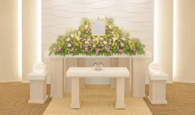 棺、ドライアイス、霊柩車、骨壺など、葬儀に必要な基本的なものが含まれています。祭壇の規模や部屋の使用料も含まれています。
