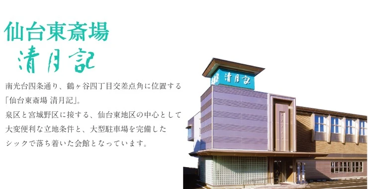 仙台東斎場清月記は、各宗教・宗派の「火葬式・一日葬・家族葬・一般葬」などの葬儀に対応できる泉区の葬儀社です。