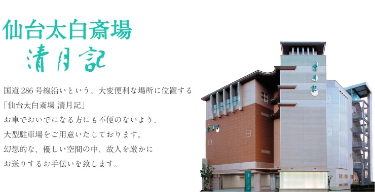 仙台太白斎場清月記は、各宗教・宗派の「火葬式・一日葬・家族葬・一般葬」などの葬儀に対応できる太白区の葬儀社です。