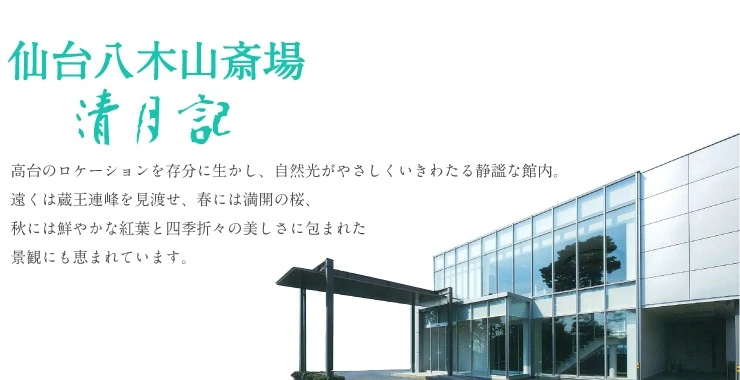 清月記/仙台八木山斎場清月記は、各宗教・宗派の「火葬式・一日葬・家族葬・一般葬」などの葬儀に対応できる太白区の葬儀社です。