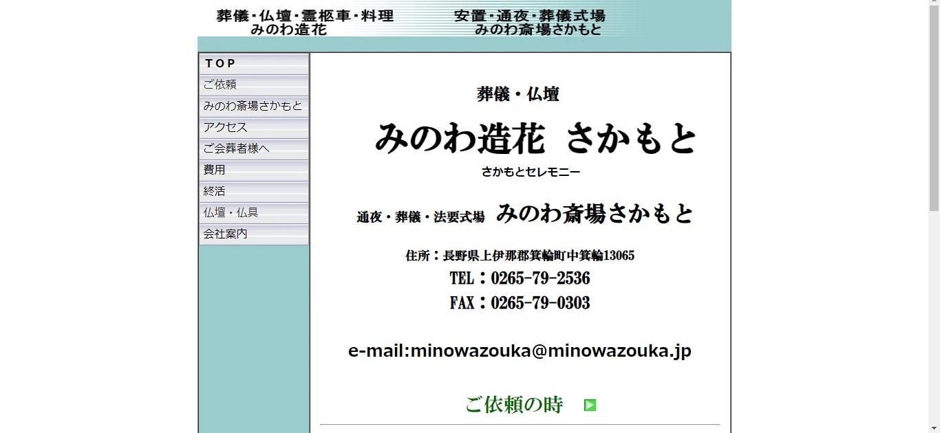 みのわ造花 さかもとセレモニーは、各宗教・宗派の「火葬式・一日葬・家族葬・一般葬」などの葬儀に対応できる上伊那郡箕輪町の葬儀社です。
