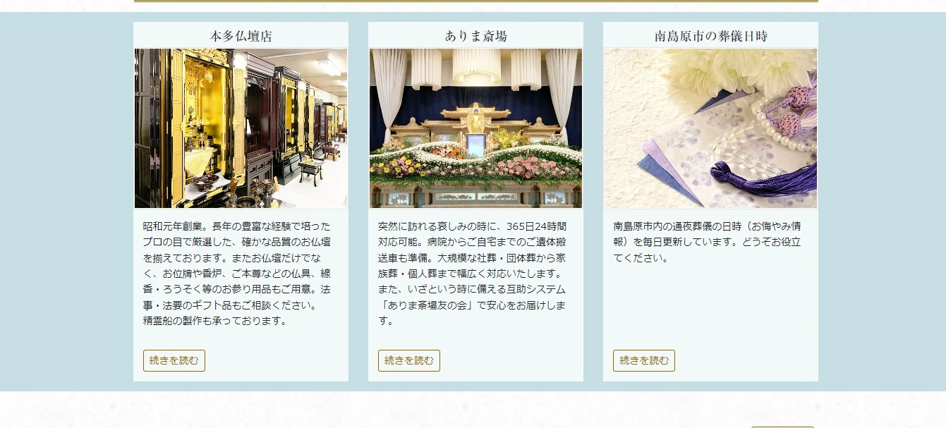 本多仏壇店は、各宗教・宗派の「火葬式・一日葬・家族葬・一般葬」などの葬儀に対応できる南島原市の葬儀社です。