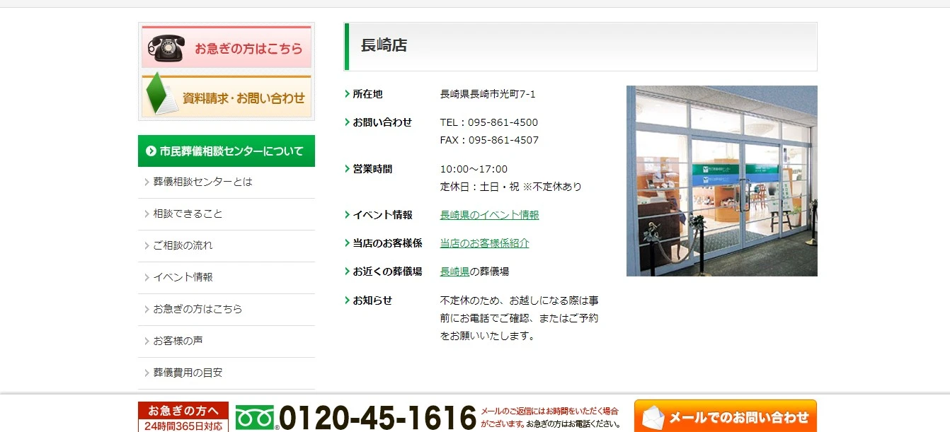 メモリード/市民葬儀相談センター大浦店は長崎市に密着した葬儀社です。24時間365日、お迎えも事前相談にも対応しています。