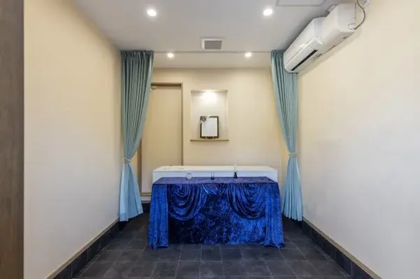 家族葬ホールひかりの森は、安置室を備えた貸切り斎場(葬儀場)です。ワンフロアに式場・控室が収まり、移動がスムーズ。ホテルの一室のような空間でお別れができます。