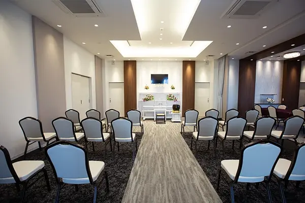 ご家族様のお時間を大切にしたい、そんな思いから、家族葬専用式場をご用意致しました。 ご家族様控室もまるでご自宅のような控室で、ご家族様と大切な時をお過ごしいただけます。 また、人数に合わせて席レイアウトを変更できる式場をご用意しております。