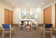 エターナル・ユウは30名収容可能な共益社の自社斎場です。 家族だけの葬儀にちょうどいい広さの式場で、アットホームなご葬儀が執り行えます。 建物内には安置室、宿泊施設があり、ご自宅での安置が難しい場合でも安心してご利用いただけます。