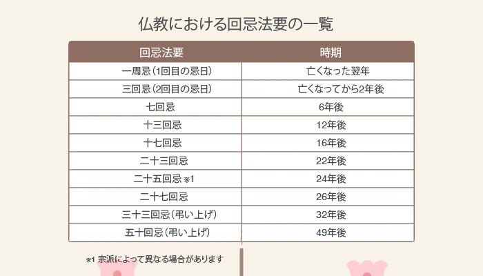 何回忌の一覧表はありますか?