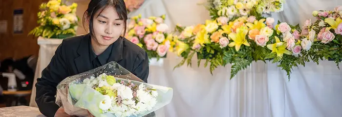 「フラワーホール那覇/小禄」では、すべてのスタッフが「想い」を大切にしています。 葬儀は、ご遺族様にとってかけがえのない時間。だからこそ、私たちは「おもてなしの心」を大切にし、ご遺族様の気持ちに寄り添ったご葬儀のサポートをいたします。受注担当、式典スタッフ、生花スタッフ、それぞれの専門分野で培った経験と技術を活かし、故人様との最後のお別れの時間を温かくサポートいたします。