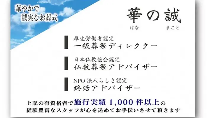 株式会社華の誠は一日葬や家族葬はもちろんのこと、火葬式や一般葬など様々な葬儀形式に対応しています。