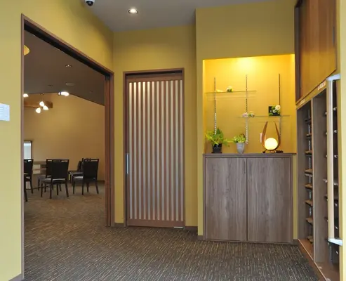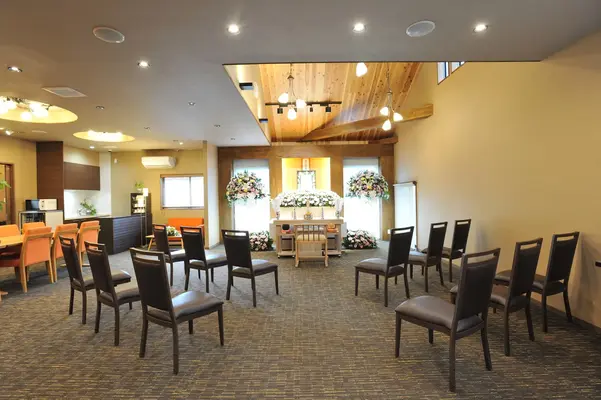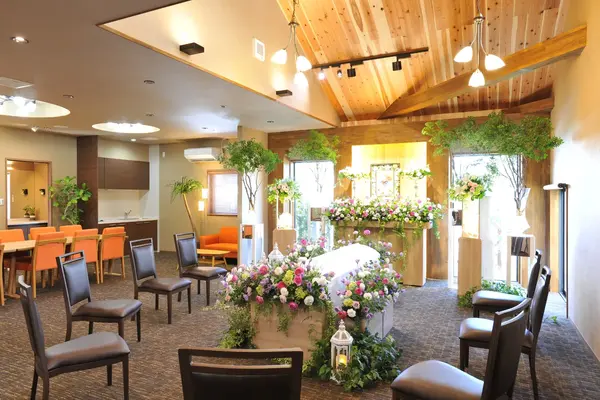 加納会館 鉢塚では、一日一組限定でお葬式を行っていただけます。こじんまりとしたあたたかい雰囲気の式場は、家族葬にピッタリ。完全プライベートな空間で、故人との最後のひと時をお過ごしください。
