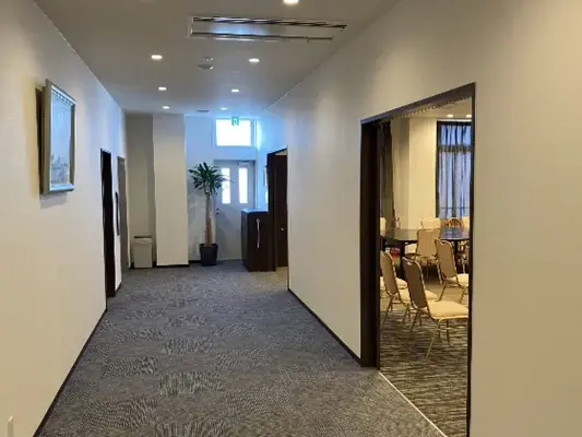 北館一般葬ホールは葬儀業界では有名なデザイナーにより設計されたコンクリート打ちっぱなしの外観です。広々とした式場をご利用いただけます。また、南館は家族葬用のプライベートホールもございます。人数が確定できなくても柔軟に対応できる家族葬専用スペースです。バリアフリーで年配の方もお子様も安心して過ごせます
