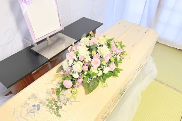 プラン料金には、病院などへのお迎え、お棺、お骨壺(小さいサイズ)、出棺用花束が含まれています。
