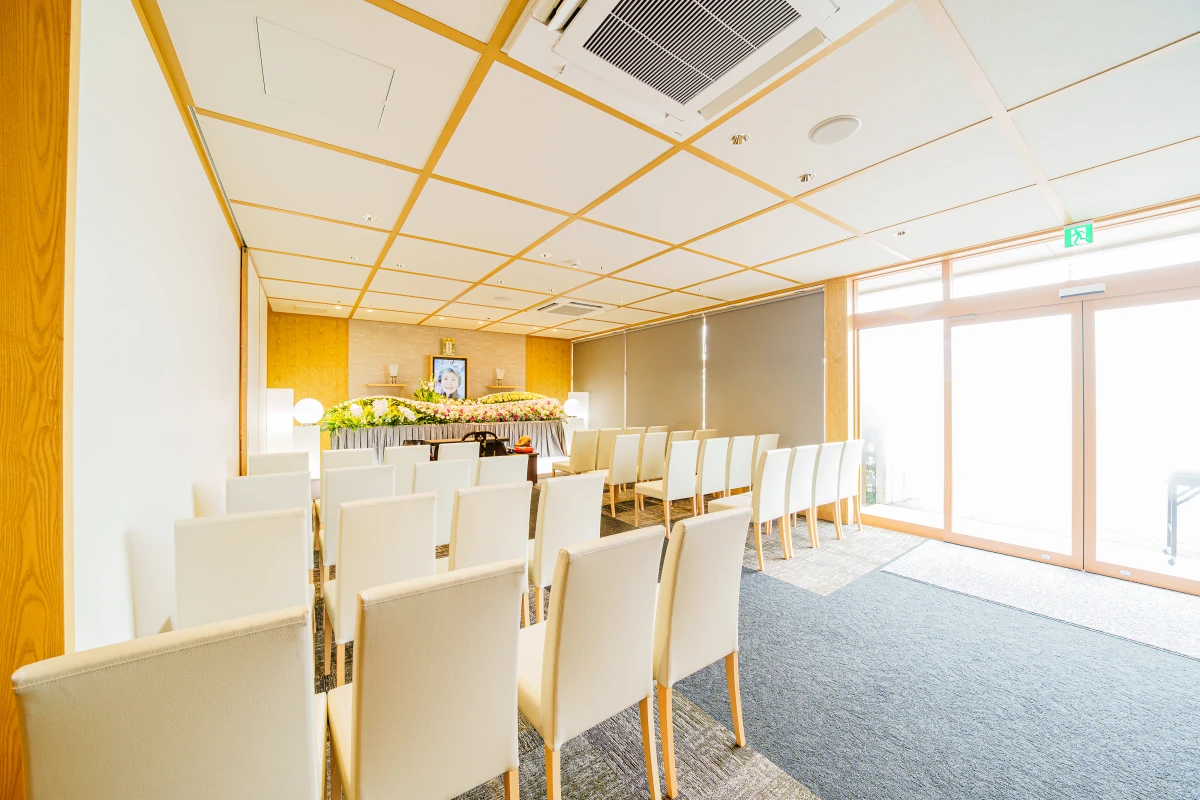 フローラルホール岸和田では、ご参列される人数や、ご葬儀の規模に応じた式場をご用意しております。故人様とご家族がご一緒にお過ごしいただける式場や、ご家族がおくつろぎいただける控室など、ご家族が思い描く家族葬がフローラルホール岸和田で実現可能です。