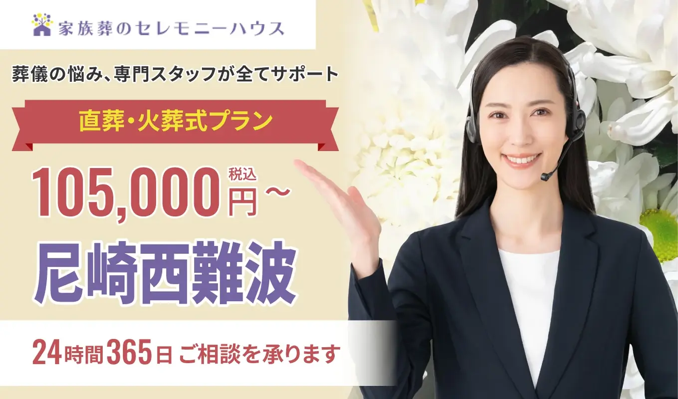 「家族葬のセレモニーハウス(セレモニーハウス尼崎西難波)」は尼崎市西難波町にある家族葬専用式場です。こじんまりとした明るい式場で、他のご家族を気にせずお別れの時間を過ごせます。尼崎市で明瞭価格の葬儀・家族葬をご提案。24時間365日、些細なことでもご相談ください。