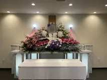 385,000円〜こちらのプランは、10名様位までの一日葬、家族葬に適しています。お花が沢山な生花祭壇です。