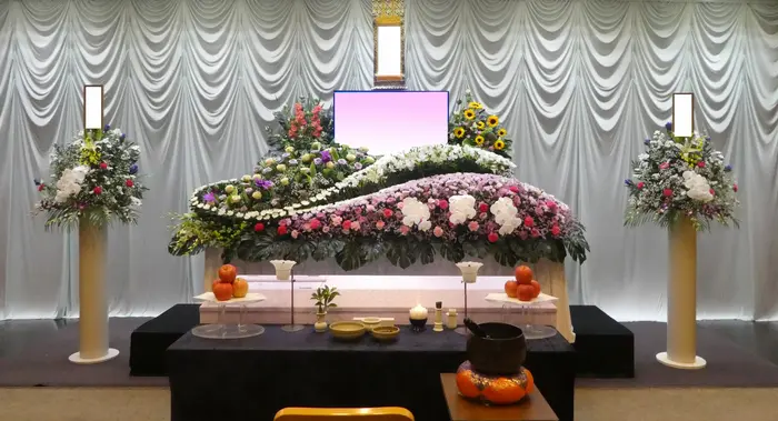 家族葬愛ほのぼのは、ご家族様が大切な方が亡くなられて動揺しているからこそ、ご家族様のお気持ちを第一にお話をさせていただきます。 故人様だけのオリジナルの生花祭壇の作成や、思い出の写真をモニターに映し出す演出で、大切な方との楽しかったことを話し合い、心温まるご葬儀に致します。