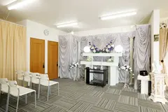 「家族葬三国ホール」は、「小さな空間にも高級感を」をコンセプトにしている家族葬専用の式場です。30名様規模のお葬式に対応しており、洋式の飾りつけと祭壇が特徴です。1日一組様の式場なので、大切な故人様とゆっくりと最期のお別れをしていただけます。