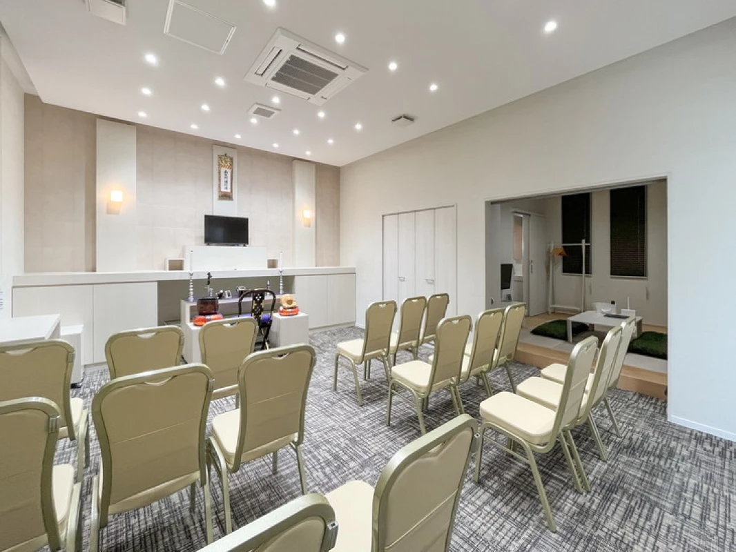 「小さなお葬式 百舌鳥梅北町ホール」は一日一組限定で葬儀を行う家族葬専用斎場です。コンパクトな式場は、家族だけでのお別れに最適。周囲に気をつかうことのない完全プライベートな葬儀をしませんか?
