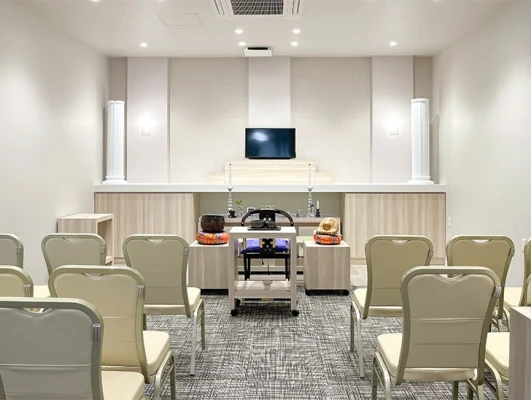 「小さなお葬式 富田林ホール」は、一日一組限定でご利用いただけます。こじんまりとした式場は家族葬にピッタリ。見学もできます。充実した設備を実際にその目で確かめてみてください。
