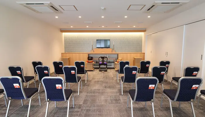 セレモニーハウス豊中柴原の自社式場は、一日一組限定の貸切りでご利用いただけます。20名程収容できる式場は、家族葬にピッタリ。他の方を気にせず完全プライベートな空間で、故人との時間をお過ごしください。