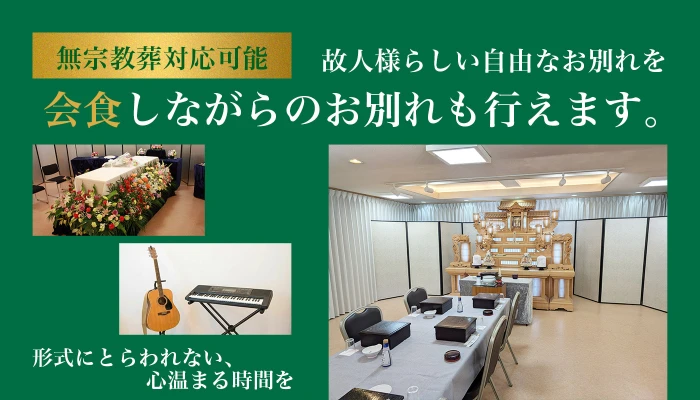 396,000円〜弊社の式場にて自由形式(お食事や思い出話)で、故人様との最期の時間をゆっくりお過ごしできるお別れ会(無宗教葬)プランです。