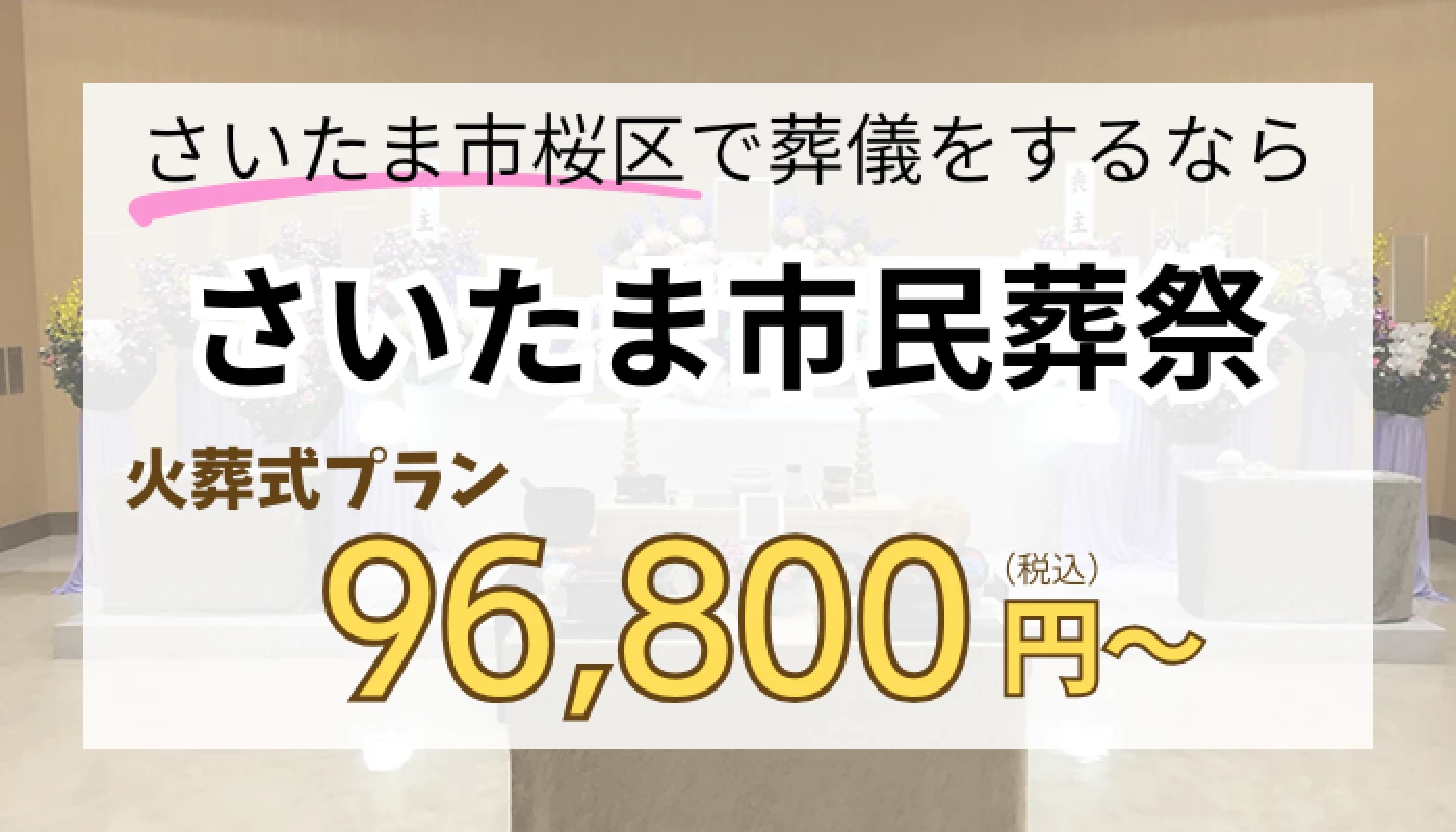 さいたま奉仕会葬祭センターはさいたま市桜区に密着した葬儀社です。24時間365日、お迎えも事前相談にも対応しています。詳しくみる